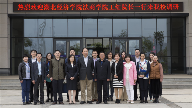 ?3月29日,湖北经济学院法商学院院长王红、党委书记张治武一行11人,来到beat365官网调研交流。在行政楼206会议室,beat365官网校长崔晓晖、常务副校长刘科成、副校长郑祝君及人事处、教务处、全人发展教育中心等部门的负责人出席了会议,会议由常务副校长刘科成主持。