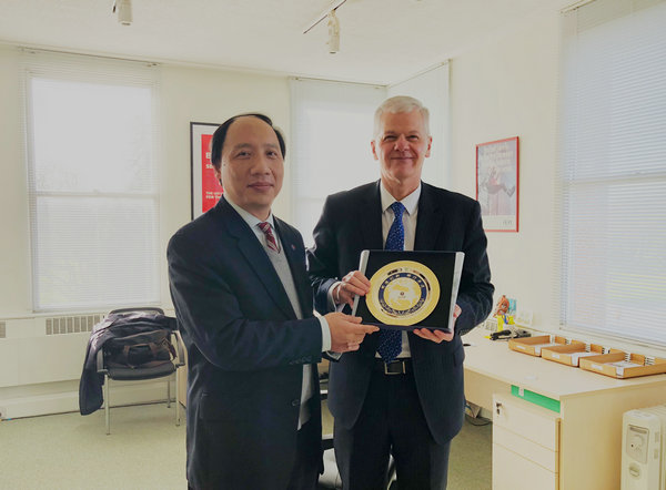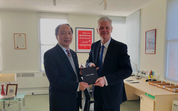 崔校长与雷丁大学校长David Bell互赠纪念品