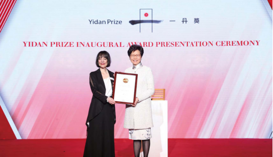 香港特区行政长官林郑月娥为卡罗尔·德韦克教授颁发“一丹教育研究奖”