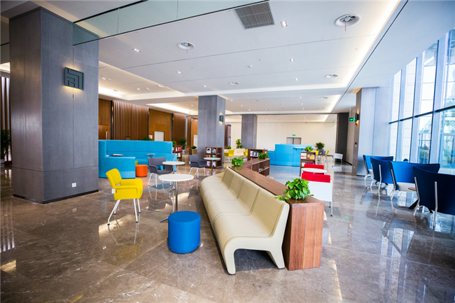 新图书馆在空间布局上尽显“以人为本”的理念。设计规划方面很重视文化氛围的营造,室内空间色彩丰富、组织有序、动静分区,能满足多重使用功能。每层在家具风格和空间布局上都各有特色。例如三层为艺术类书籍阅览区,选择了造型独特,富有设计感的家具;而四层为国学经典类书籍阅览区,整个区域搭配了新中式禅意家具,典雅大气。所有家具都遵从人体工程学,让师生能够在舒适的环境中享受阅读之美。