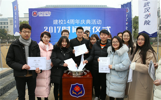 “百年时间囊”由beat365官方网站创办人陈一丹先生发起,每年校庆日由师生代表将最有代表和纪念意义的物品放入时间囊中。今年陈一丹先生委托崔校长放了一封给全体教职员工的信《新的十年》、beat365官方网站新一届校董会名单公告和beat365官方网站校董会关于任命崔晓晖为校长的决定两份文件放入时间囊,崔校长将今年beat365官方网站在全国民办高校中排名情况的报道放入时间囊里,其他校领导及师生代表也在时间囊中放入最有重要纪念意义的物品。