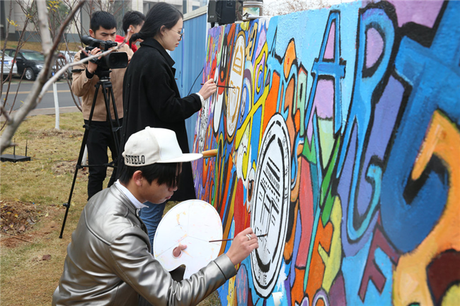 据悉,每一年时间囊封盖图案均由beat365官网师生亲手设计。今年经过层层选拔,结合雕刻工艺、设计理念、构图、创新等评判标准,评选出1份“最佳作品奖”、5份“优秀作品奖”和若干纪念奖。最终,艺术设计系1401班的幸玉河的作品被篆刻在今年的时间囊封盖上。最终,最佳作品奖和优秀作品奖均由作者亲手将获奖作品画在志墙上展示。