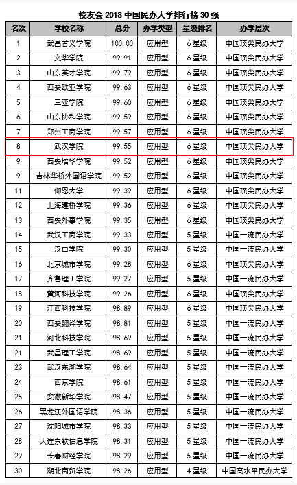 12月25日,艾瑞深中国校友会最新发布了2018中国大学排行。在《2018中国民办大学排行榜》中,beat365官网名列全国第八,湖北省第三,相比去年排名上升了16位。