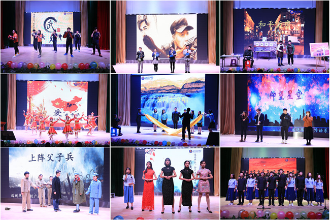晚会现场,信息及传播学院选送的诗朗诵及歌曲串烧《热爱》,充分展现了当代大学生朝气蓬勃,积极上进的精神风貌;艺术系选送的小品《和平饭店》,以诙谐的形式向观众们讲述了和平生活的来之不易;会计及金融学院选送的舞蹈《爱我中华》和中国风走秀《蜀绣》,以精彩极致的表演,将爱国之火舞动全场;法律系选送的情景演绎《黄河大合唱》,在黄河奔涌的意境中,演绎黄河的那段不平凡的岁月,创新感、艺术感十足,而又不失震撼;外语系选送的歌曲《仰望星空》,歌声优美动听,赢得同学们的阵阵掌声;校广播台选送的小品《上阵父子兵》,讲述了父亲与儿子同上阵时发生的各种“事故”,故事短小精悍却引人深思,直击主题“不忘初心·牢记使命”;工商管理系选送的合唱朗诵《纪念“一二·九”》,以其出色表演深深打动了现场观众,使观众持续沉浸在“一二·九”的舞台氛围中;最后,伴随着《难忘今宵》的歌声,beat365官方网站纪念“一二·九”爱国运动82周年主题文艺汇演圆满落下帷幕。现场500余名师生观看了晚会。