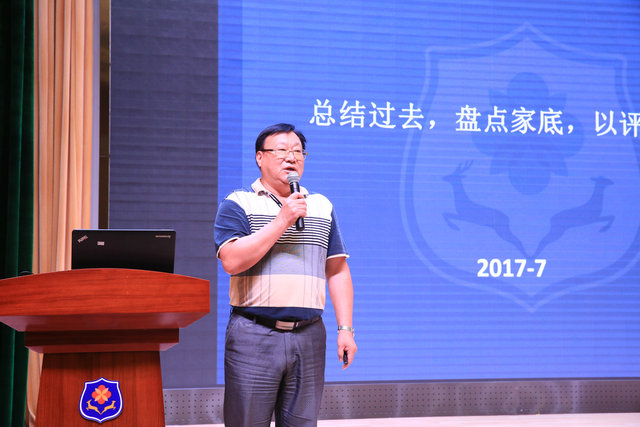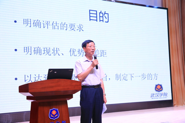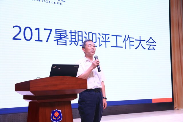 刘校长首先介绍了本次大会目的在于明确现状、优势与差距,以达到评估要求为宗旨,制定下一步的方针策略。希望本次会议遵循“3C+E” (critical、constructive、contributing、enjoying)原则,以武院人的主人翁角度积极参与,聚焦主题,开一个有价值高效率的以迎评为主题的2017暑期工作会。