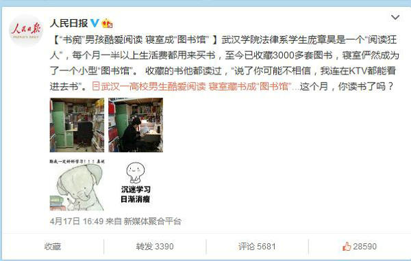 人民日报官微阅读1986万次,转发3390次,评论5681条,点赞28590次