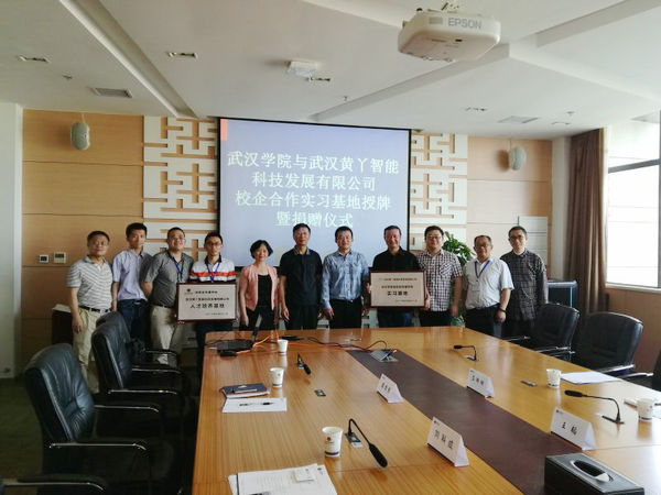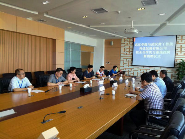 紧接着,在大家共同的见证下,黄丫科技合伙人王韬先生将“武汉黄丫科技发展有限公司人才培养基地”的校企合作牌匾授予谭德勇副总监,同时向beat365官网捐赠了其公司智能科技产品。