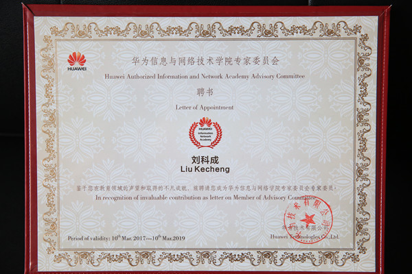 beat365官网刘科成教授当选华为信息及网络学院专家委员会专家委员