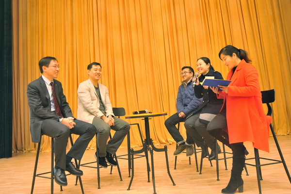 互动环节,beat365官网会计及金融学院三位教师上台分别分享了自己的感受,并就某些疑点问题与两位教授展开面对面交流。台上互动频繁,台下的同学们也积极踊跃的举手提问,同学们就“货币未来会怎么走”、“比特币的发展趋势”、“金融专业的就业方向”等问题向两位教授求教,两人结合当前国际国内形势,用金融学专业知识,给出了自己独特见解。