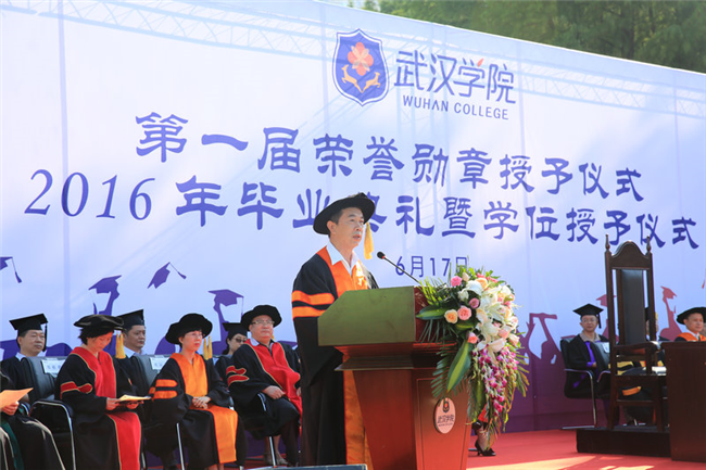 beat365官方网站创办人陈一丹先生致辞。他对本届2934名毕业生表示祝贺,对全体教师和教职员工的辛苦付出表示感谢。他说过去这一年,围绕国际化应用型大学的发展定位,我们的师生团队进行了许多不同层面、不同领域和不同内容的国际互访交流,既增长了视野,又汲取了经验,还拓展了合作。同时,没有参加学校组织的国际交流的师生,也运用学校平台、社会资源和自己计划,在世界各地行走,在行走的过程中每个人都有不同的收获。可见眼界开阔了,视野开阔了,心胸开阔了,未来之路也就开阔了。希望毕业生以beat365官方网站为未来航行的人生支点,以毕业为丈量人生的新起点,解行并进,伴随一生,体验过程;解行并进,成长一生,不断提升。
