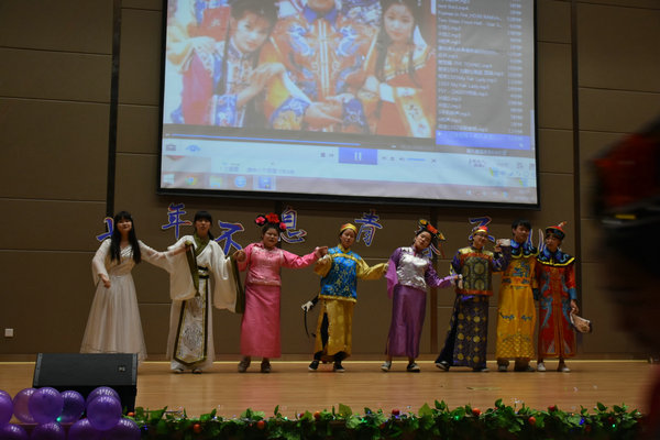 外语系舞蹈队带来的中场舞蹈Daddy将现场气氛推向高潮,台下呐喊欢呼声此起彼伏。团学联自编自演的节目《打劫》笑点不断,赢得阵阵掌声。话剧《项链》将原版的故事情节搬上舞台,情节讲述的清晰完整,表达到位,发人深省。话剧《还珠格格》,《这个杀手不太冷》也都各具特色,生动有趣。