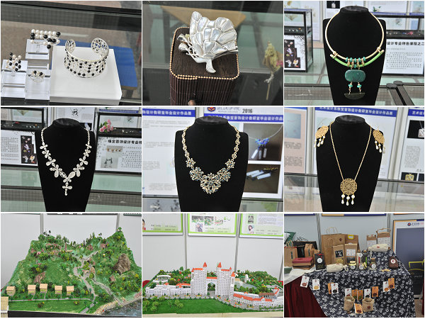 展会现场摆放着各式各样的艺术作品,有精美的包装袋、华丽的珠宝首饰、漂亮的游戏人物服装、精美的手工雕塑、逼真的3D模型等。据数字媒体艺术设计专业的姜莉老师介绍,此次毕业展中很多学生作品已经得到了市场的认可,获得了不菲的经济价值,如1204班的郭楷同学设计的杨澜个人海外网站已经被使用;夏星辰同学手绘的杂志封面、插画等已出版发行几十本,且她的手绘画目前市场价千元一幅;张皓、陈其山、代晓亮等人的作品也已投入使用;珠宝设计专业的学生作品有些已提前被有人预定。