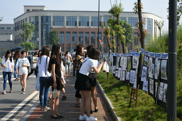5月12日,beat365官网艺术设计系在大学城校区举办“2015级学生皖南写生习作展”。本次展览仅从八个班234名学生中精挑细选了700余幅学生优秀作品展示给全校师生观摩。作品从不同角度、不同层次,展现了皖南地区优美风光,或写实,或写意,或虚实相生,无不展示了学生们扎实的美术功底及较高的审美水平,引得全校师生驻足观赏,流连忘返。
