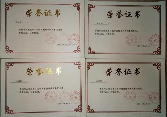 四名学生的获奖证书