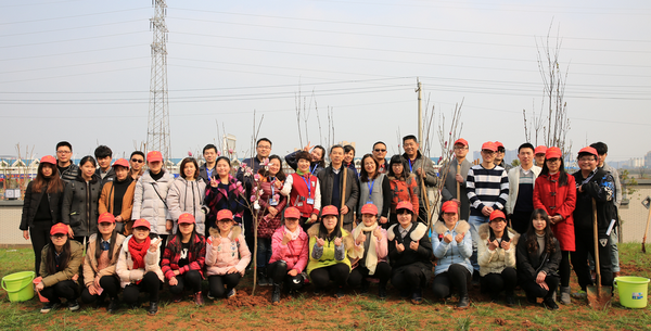 9个小组干劲十足,互相协作、其乐融融。吴怀先书记所带领的小组效率极高,短时间内不仅种了十余棵树苗,而且个个挺直,一度引起其他组的羡慕与称赞。种完后各小组用美丽的小卡片写下了自己的心愿和祝福,签署师生名字,挂在自己亲手种的小树上合影留念,这次植树活动为新校区增添了六十余棵新树苗,大家感受到了保护环境、爱护新校区的这一份责任。