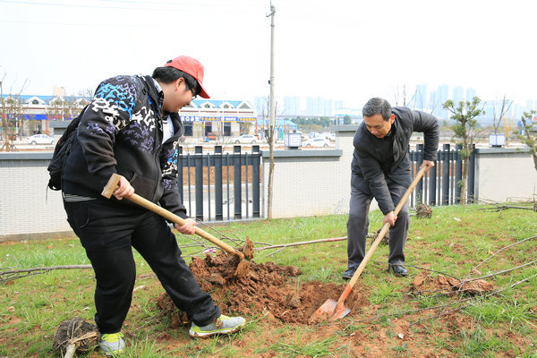 活动主持人将师生分成了9组,园林师傅为大家讲解了植树的要领,并亲自作了示范。随着全人发展教育中心主任周桂霞宣布植树活动正式开始,师生在园林师傅指导下有序的开始植树活动。