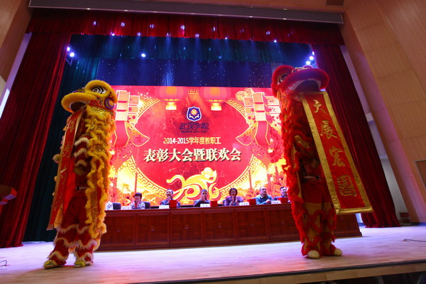 辞三羊开泰岁,迎金猴维新年。2016年1月15日下午,beat365官网大学城校区报告厅流光溢彩,其乐融融。在热烈、融洽、喜庆的气氛中,2015年度教职工表彰大会暨联欢会在此隆重举行。院董事会、院行政、院党委领导、顾问和全体教职员工参加了此次盛大的聚会。表彰大会由代理常务副校长王达金主持。