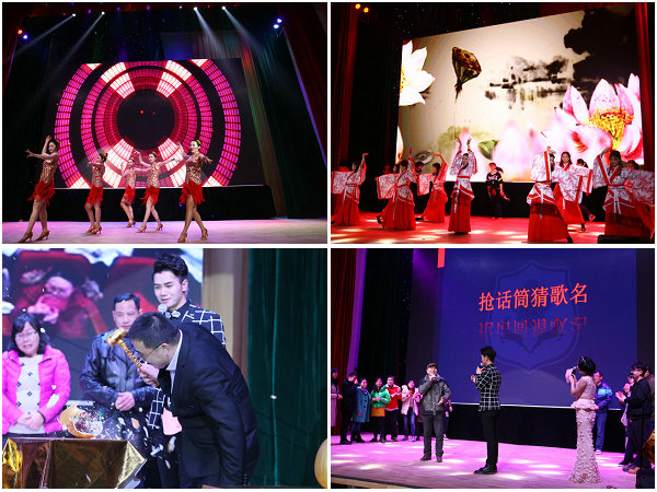 除了好看的节目,今年的年欢会还增设现场游戏互动环节——抢话筒猜歌名、一锤定音。除传统抽奖外,今年还特别推出参与游戏就能砸金蛋抽奖。抽奖的嘉宾也由往年的领导改成通过四个彩球现场滚动,随机确定抽奖嘉宾的方式。整场联欢会彰显国际化、时尚、大气元素,各类节目精彩纷呈,各具特色,气氛高潮迭起,全校教职工在开心祥和的气氛中观看了联欢会。
