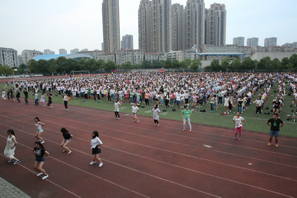 晚上6时,新生们穿着统一的营服在大操场集合。当《Macarena》的音乐响起,主席台上的院艺术团的同学们率先跳起了欢乐的舞步,在她们的带领下,部分新生也开始随着音乐舞动。院艺术团的同学们随后分解舞蹈动作教授新生,更多新生加入了舞蹈的行列。