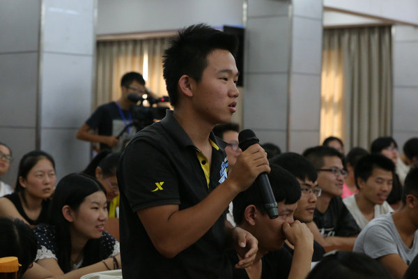 交流过程中,新生就“ACA证在国内找工作相关行业认可吗”、“ACA证与中国注册会计师哪个更容易”等问题向范宏彬先生提问,范先生结合自身的专业及经验详细的为新生们解答了疑惑。新生提问杨柳女士,“难道要成功就只有坚持吗?”、“对大学生提升能力有什么好的建议”。杨柳女士回答到“自己成功的秘诀有三要素:自信,激情和坚持”。“提升能力最好的方式就是要智商,情商双向提升,要多看好书,多看电影,更笑言要多谈恋爱来提高情商。”