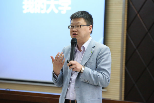 范宏彬教授以“我的成长故事”为主题,从“我的第一个项目”、“我的教训”、“我的瓶颈期”、“我的解决方案”、“我的外派经历”、“我的升职被延迟了”、“我的升职又被延迟了”、“我的武汉创业”八个方面与新生分享了自己的人生经历。他告诉新生,选职业就应该选取一个有好平台,能让自己成长的公司。要去培养自己的能力,自己的能力是别人拿不走的,在不同的阶段也应该适当调整自己的定位。