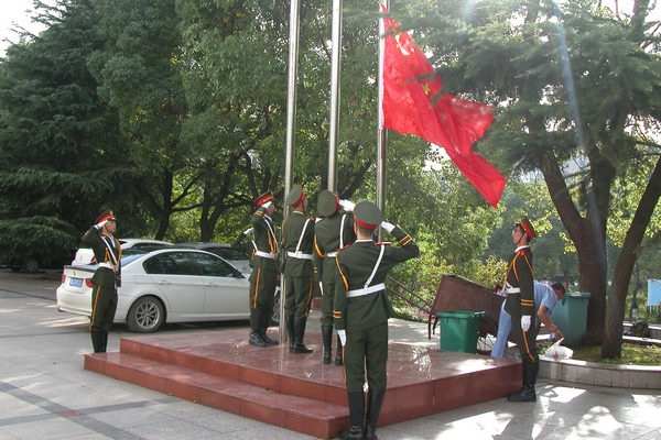 从5月24日国旗班成立到现在,每位成员在教官带领下坚持每天训练,做好每一个动作的分解演示,每一个手臂摆动的弧度,每一个脚步的方向。面对升国旗这份神圣的工作,训练注定会艰苦而难熬,但是国旗班成员依旧坚持起床,口号响彻天空,只为升起这最鲜艳的五星红旗,虽然很累很苦,却不敢有一丝懈怠,唯恐亵渎了红旗的尊严。