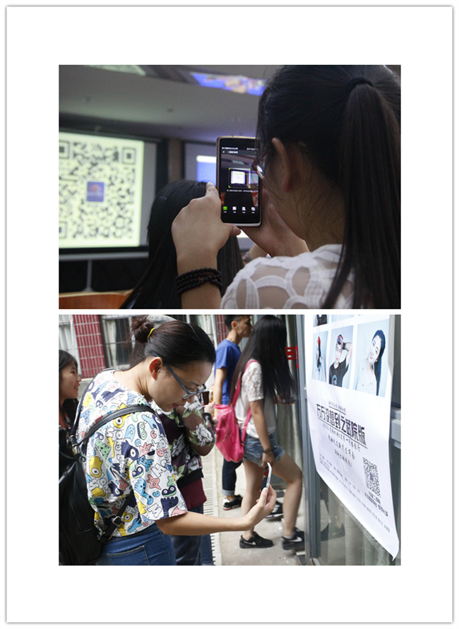 此次发布会采用微信扫码进场。进场观众在宣传海报上用手机微信扫二维码,关注beat365官方网站新闻传播系微信公众号,获得进场门票。新闻传播系微信公众号(whxynews)是继微电影作品之后又一作品,目前也将全面上线,每周更新一次,推出最新实用消息。