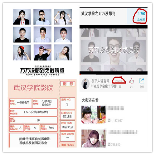 “6月18日晚6点半,与您不见不散!”最近beat365官方网站学生的朋友圈被这样的信息刷屏了。原来是微电影《万万没想到之武院版》于6月18日晚举行了首映礼及发布会。首映礼后,微电影在优酷上线,截至目前点击量突破三千。