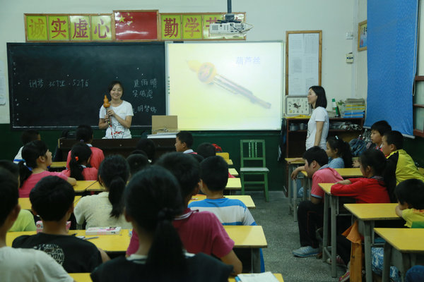 5月29日,志愿者们在当地小学老师们的支持下同孩子们开展了舞蹈课,手工课以及音乐课,一个个手把手的教如何摆动作,如何描绘线条,如何认识乐器的种类的使用方法。志愿者们都一一跟孩子们分享,让孩子们感受文化魅力的同时获取欢乐。