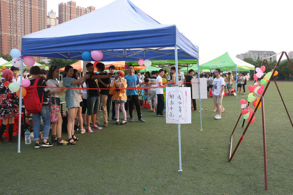 在520和园游会这样一个特殊的时间,各类社团各想奇招,情侣游戏、单人游戏一个不落。射箭、吃饼干、爱的对对碰、吹牛皮等游戏赢得了众多学生们的喜欢,各个社团准备的美食更是抓住了学生的胃,同时为了赢得各社团精美的奖品,所有学生使出了浑身解数。
