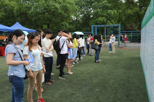 学生们认真查看招聘信息(摄影:江禹)