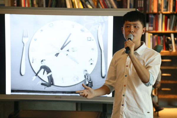 下午3点分享会正式开始,403国际艺术中心的漫行书阶上已经坐满了观众。首先杨达从一张拍摄于武汉的摄影作品开始,呼吁大家在这个快节奏的社会中,仍然要保护环境,这是我们每个人都应该做的。然后一一向大家展示了自己在印度、东南亚等地拍过的摄影作品,并向大家分享了自己对于光影把握等拍摄技巧和拍摄感受。杨达说,他最喜欢那张在印度拍摄的《凝望生活》,“注意到她,是因为那双无比坚定的眼神,那是双坚韧,思索,犹豫,肯定,充满着一切幻想的眼神,关于成长,关于你的,关于我的,应该说我在她眼中看到了整个印度。”参加此次活动的新闻系学生望剑剑说:“杨达学长的黑白纪实摄影,贴近我们的生活,看了很有感触,受益良多。”