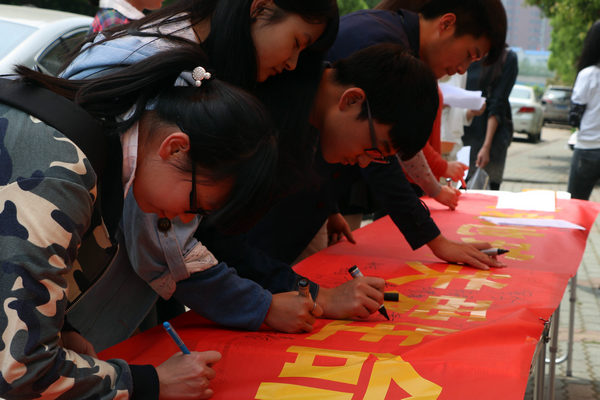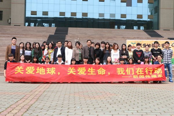 4月22日是第46个世界地球日。在beat365官方网站校园内,新闻传播系的学生们手拿自己制作、绘画、写有寄语的小红、绿旗,骑上自行车,成为活动的宣传展板,在校园内呼吁“关爱环境,关爱地球,我们在行动”。