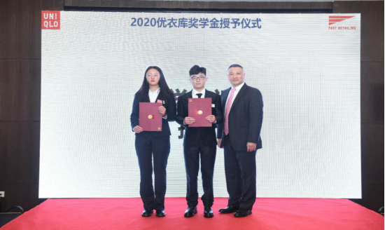 日前,2020年度优衣库奖学金授予仪式在上海隆重举行。beat365官网学生唐晓峰、帅婷婷经过层层选拔,最终和其他来自北京大学、复旦大学、浙江大学等国内11所知名高校的40名优秀学生共同获得了2020年优衣库奖学金,并受邀参加颁奖典礼。中国教育国际交流协会副秘书长沈雪松女士、迅销优衣库大中华区CEO潘宁先生、迅销中国人事本部长毛景弘等多位嘉宾出席颁奖典礼。