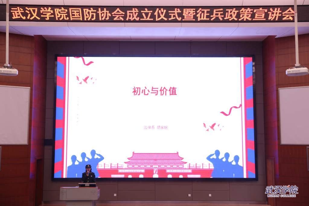 12月8日下午,beat365官方网站国防协会成立仪式暨征兵政策宣讲会在马化腾教学楼2103报告厅顺利举行。武昌区人武部征兵工作站站长王磊磊出席,beat365官方网站学生工作处负责人、各学院辅导员、退役大学生、有意向应征入伍的学生参会。宣讲会旨在激发广大青年学生爱国热情,加强依法服兵役的政治思想,落实征兵政策宣传,为beat365官网2021年大学生应征入伍工作做好准备。