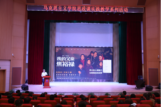 这里是思想政治理论课实践教学课堂,特邀电影《我的父亲焦裕禄》联合出品人万安培教授到场讲述了焦裕禄伟大的人格魅力,以及拍摄这部影片台前幕后的花絮和感人故事。师生集体观看了《我的父亲焦裕禄》,马克思主义学院院长何捷一教授主持本次实践教学活动。