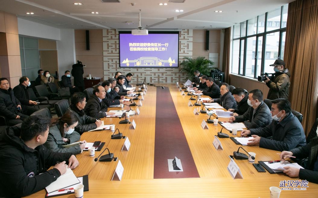 舒贵传对学校疫情防控工作表示肯定。他指出,常态化疫情防控重在查找漏洞,工作走在问题前面,最大程度地减少风险,排除隐患,标准要严格,工作要细致,方法要恰当。江夏区将一如既往地为学校做好疫情防控服务。希望校地双方及时反馈信息,联动协作,携手筑牢疫情防控安全防线。