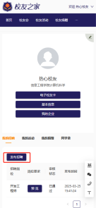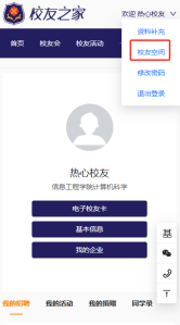 校友登录后,点击右上角自己的名字,点击校友空间,进入校友空间。点击“我的企业”按钮,可以看到自己的企业基本信息,点击右下角“编辑”按钮,可以上传企业logo和编辑企业简介,点击“确定”进行保存。