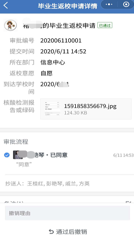 5.返校备案审批通过后,整个返校流程就走完了。然后按照学校的相关通知有序返校。