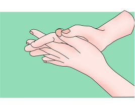 (3)夹:掌心相对,双手交叉沿指缝相互揉搓。