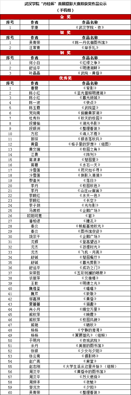 欢迎社会各界对评选结果进行监督。如对公示作品有异议,可在公示期内以实名邮件反映。邮箱地址:xuanchuan@whxy.edu.cn