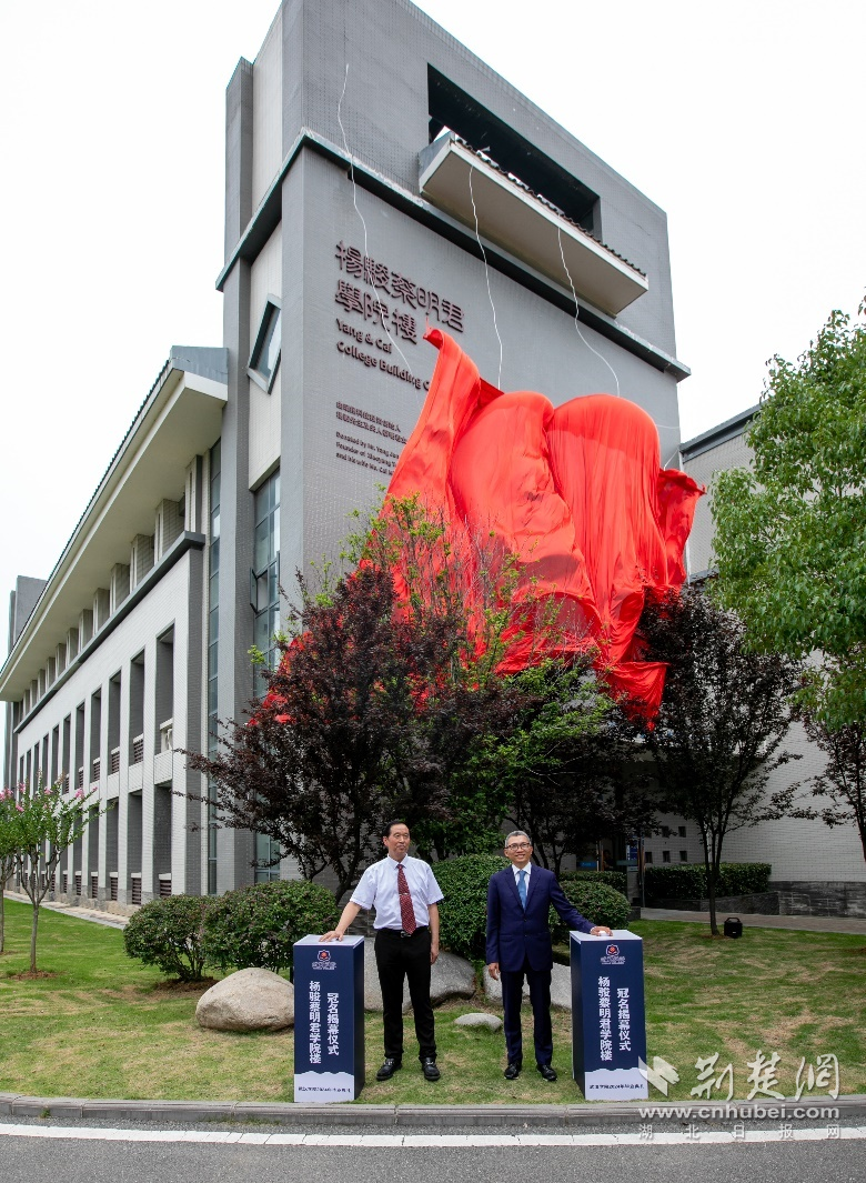 beat365官方网站创办人陈一丹和校长李忠云教授为“杨骏蔡明君学院楼”揭幕。学校供图