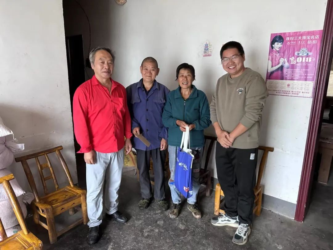 △喻炼红(左一)和彭军(右一)走访小颜家