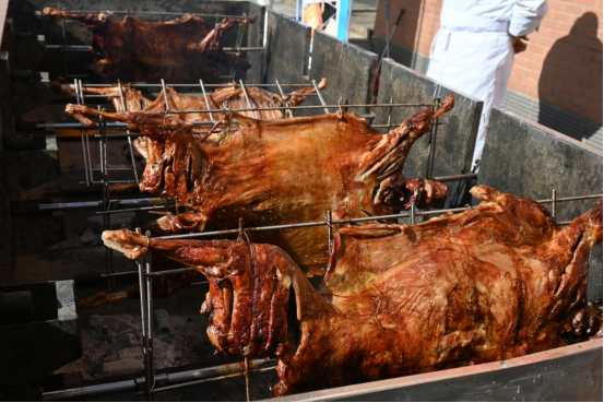 在众多美食中,烤全羊成了本届美食节的“顶流”,五只外焦里嫩的烤全羊供师生免费品尝,现场香气四溢,吃到的师生都直呼“真香”!各式各样的甜品则是活动的“颜值担当”,好看又好吃。寻常菜肴在厨师的精心烹饪和摆盘下更加的色香味俱全,暖胃亦暖心。
