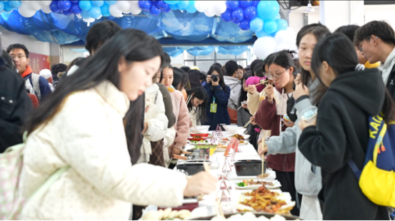 在这场主题为“暖冬盛宴、味蕾狂欢”的活动中,食堂摇身一变,成为美食的梦幻乐园。精心布置的场地,五彩斑斓的装饰,令人垂涎欲滴的美食,空气中还弥漫着各种诱人的香气,瞬间点燃了大家的热情,师生通过品尝食堂各档口厨师精心烹制的各色美食,收获校园时光里的“小确幸”。