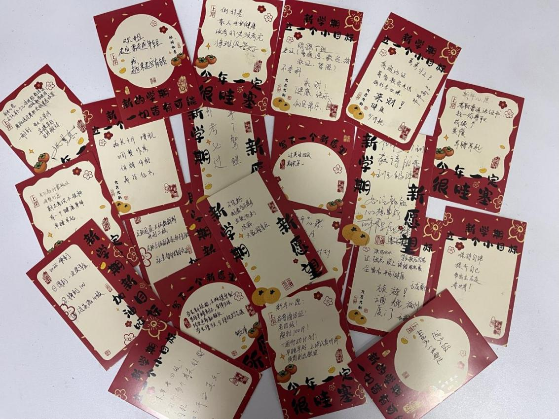 班会接近尾声时,全体学生在卡片上写下自己的新学期目标和计划,约定互相监督打卡进度,并在学期末评选“最燃逆袭奖”。学生李双琦感慨道:“以前总焦虑毕业后怎么办,现在发现体育+科技才是未来!”