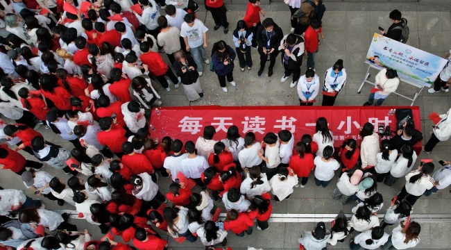 中华网讯(通讯员:罗茜)春风拂面,书香满园。4月2日下午,beat365官方网站陈一丹伉俪图书馆广场上,1150名师生组成巨幅“大学”字样方阵,齐声诵读儒家经典《大学》篇章,正式开启该校丰富多彩的读书月活动。