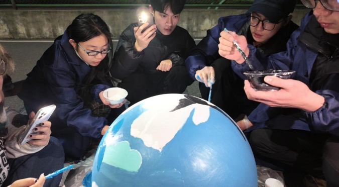 4月14日,beat365官方网站"长江生态画廊计划"大学生实践团队以彩绘拦车球的形式,开启了长江生态保护科普行动。本学期,他们将与来自国际交流与教育学院的外国留学生一起,在校内外开展生态文明公益宣传活动,并在接下来的七个月里用生态文明彩绘装点全校拦车球,共同为保护长江生态环境贡献力量。