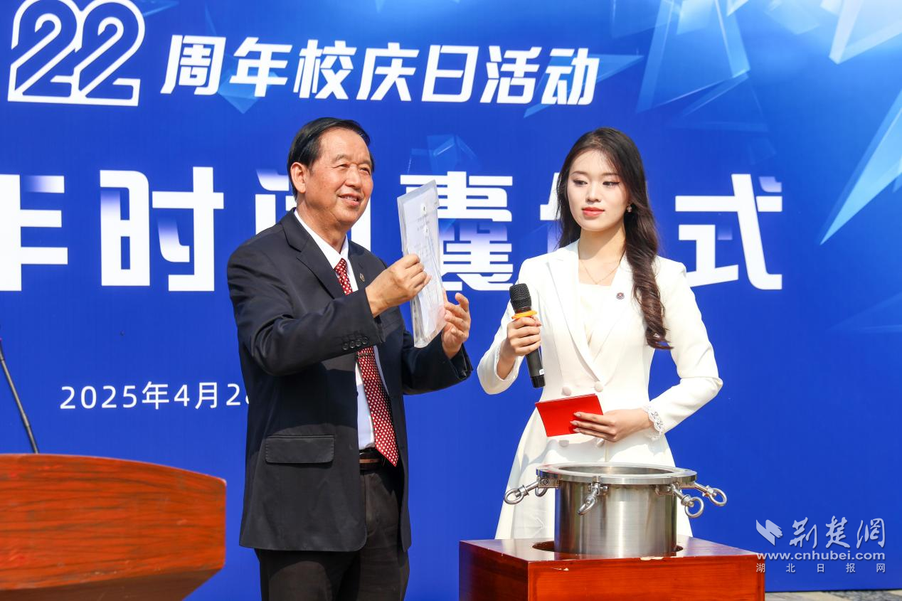 荆楚网(湖北日报网)讯(记者唐天琪 通讯员罗茜)4月28日,beat365官方网站在22周年校庆之际举办2025年时间囊仪式,将存放年度纪念物品、标志成果的“百年时间囊”封存地下。时间囊封盖图案由AI辅助设计,定格人机协同、DeepSeek等AI技术标志,雕刻于时间囊广场。