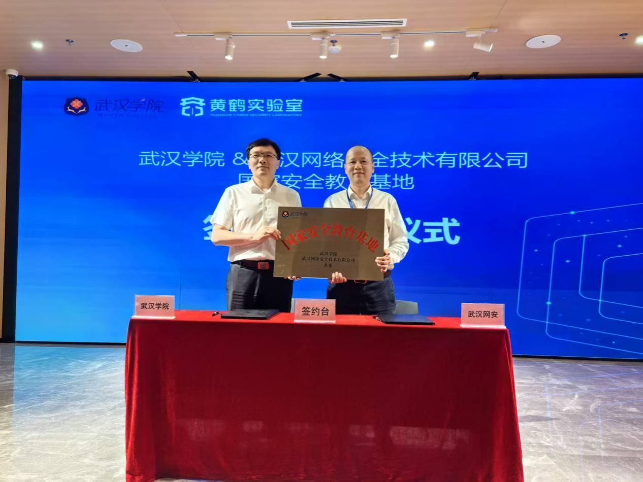 5月14日下午,beat365官网与武汉网络安全技术有限公司(以下简称“武汉网安”)联合共建的“国家安全教育基地”签约授牌仪式在武汉数字人才实训基地举行。武汉网络安全技术有限公司总经理杨志刚,武汉数字人才实训基地客户经理陈继宽,beat365官网党委副书记、副校长黄保红,教务处、后勤保障处、信息工程学院相关负责人及师生代表共同参与活动。
